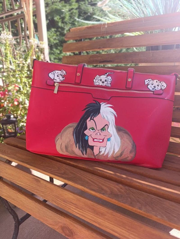 Très grand sac à main entièrement customisé à la main sur le thème de Cruella d'enfer